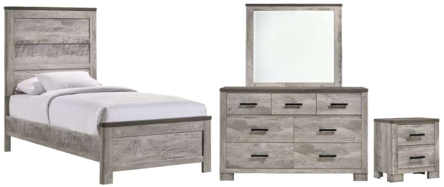 Includes: Bed, dresser, mirror and nightstand