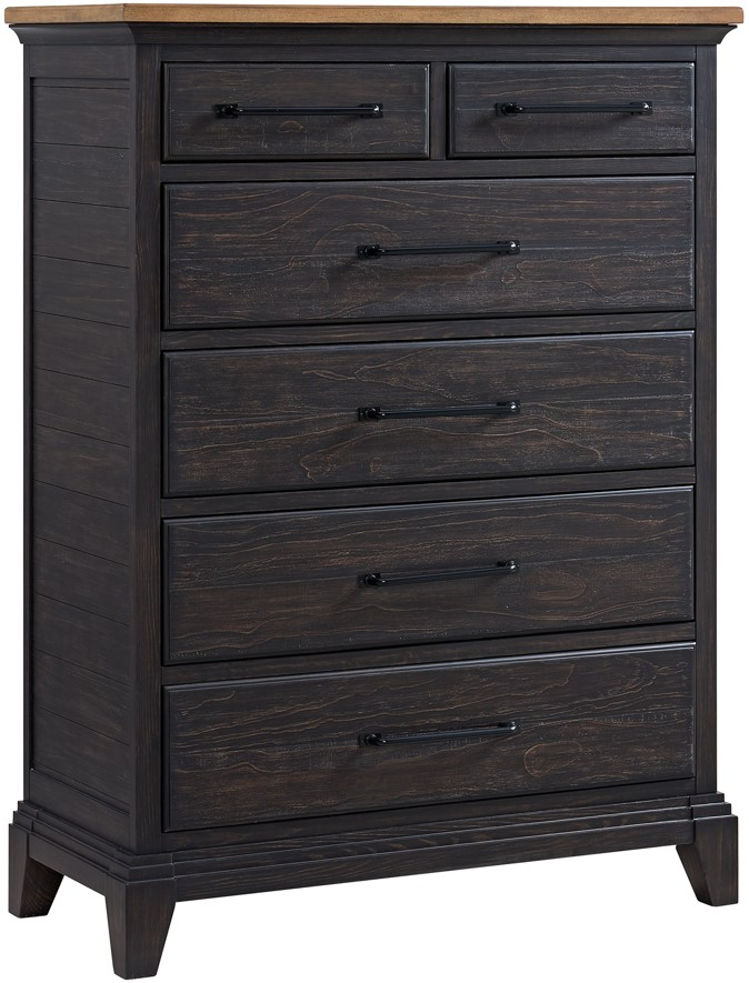 Felt-lined top-row drawers provide extra protection for your delicate items, and metal drawer pulls add a sophisticated, industrial touch. To further this piece’s appeal, drawer boxes feature skillful dovetail construction and smooth ball-bearing glides. For a refined and practical addition to your bedroom, the Montrose Chest delivers in both quality and style.