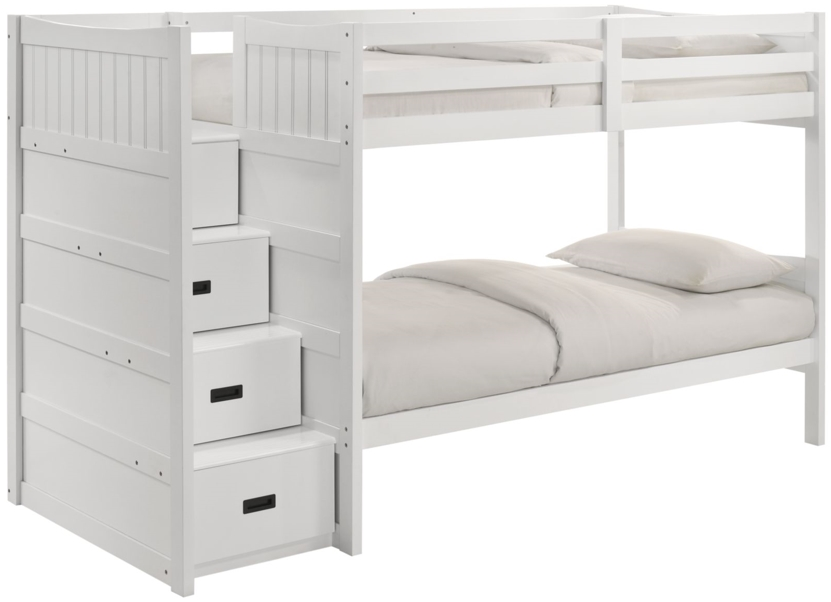 The Sami twin over twin step bunk bed combines space-saving design with practical storage for youth bedrooms. Finished in rich espresso, it features four step-integrated drawers for organized essentials. With a left-side headboard and sturdy construction, this bed offers durability and style while maximizing room layout and everyday comfort.Read More