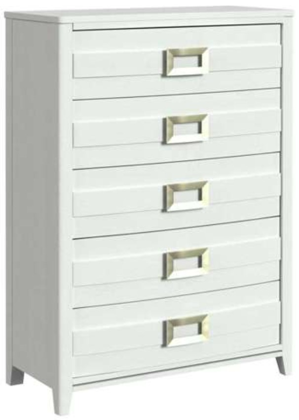The Tobias 5-Drawer Chest is a crisp, modern addition to your home. Designed with gently sloping horizontal slats that create a unique aesthetic and robust silver drawer pulls that effortlessly draw the eye, this piece adds a sense of refinement to any space.Read More